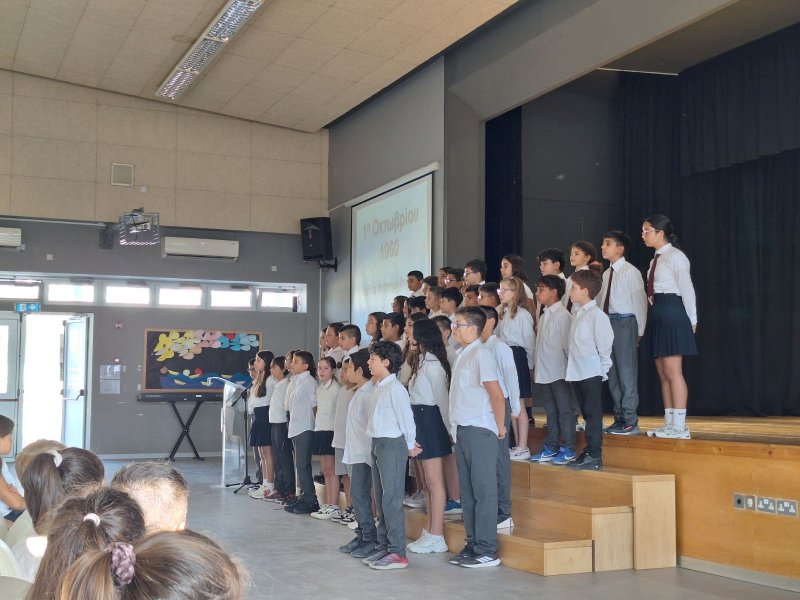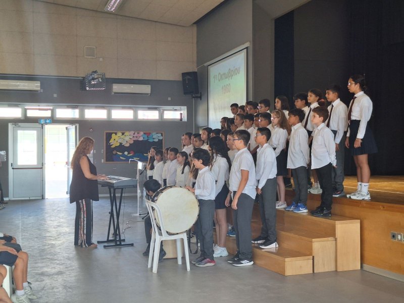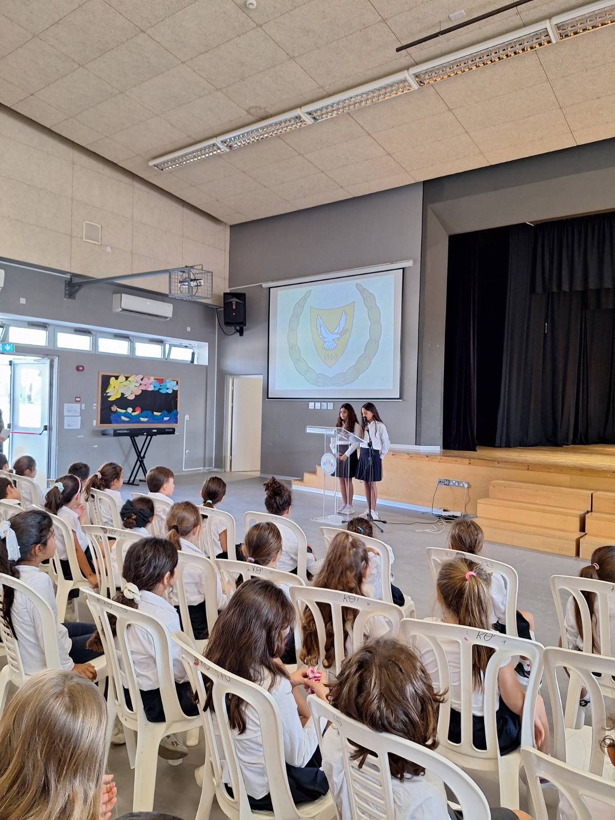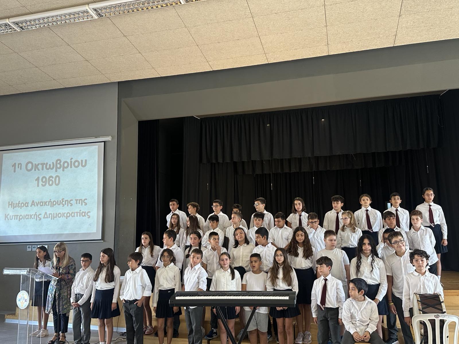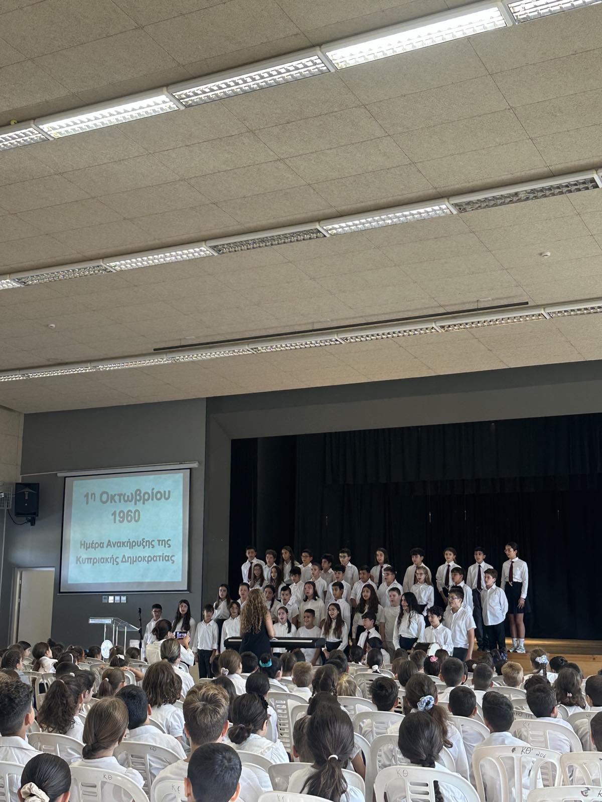 Στο σχολείο μας πραγματοποιήθηκε εκδήλωση αφιερωμένη στην Ημέρα της Ανεξαρτησίας της Κύπρου από τα παιδιά της Στ΄τάξης, τα οποία παρουσίασαν ένα σύντομο και όμορφο καλλιτεχνικό πρόγραμμα.