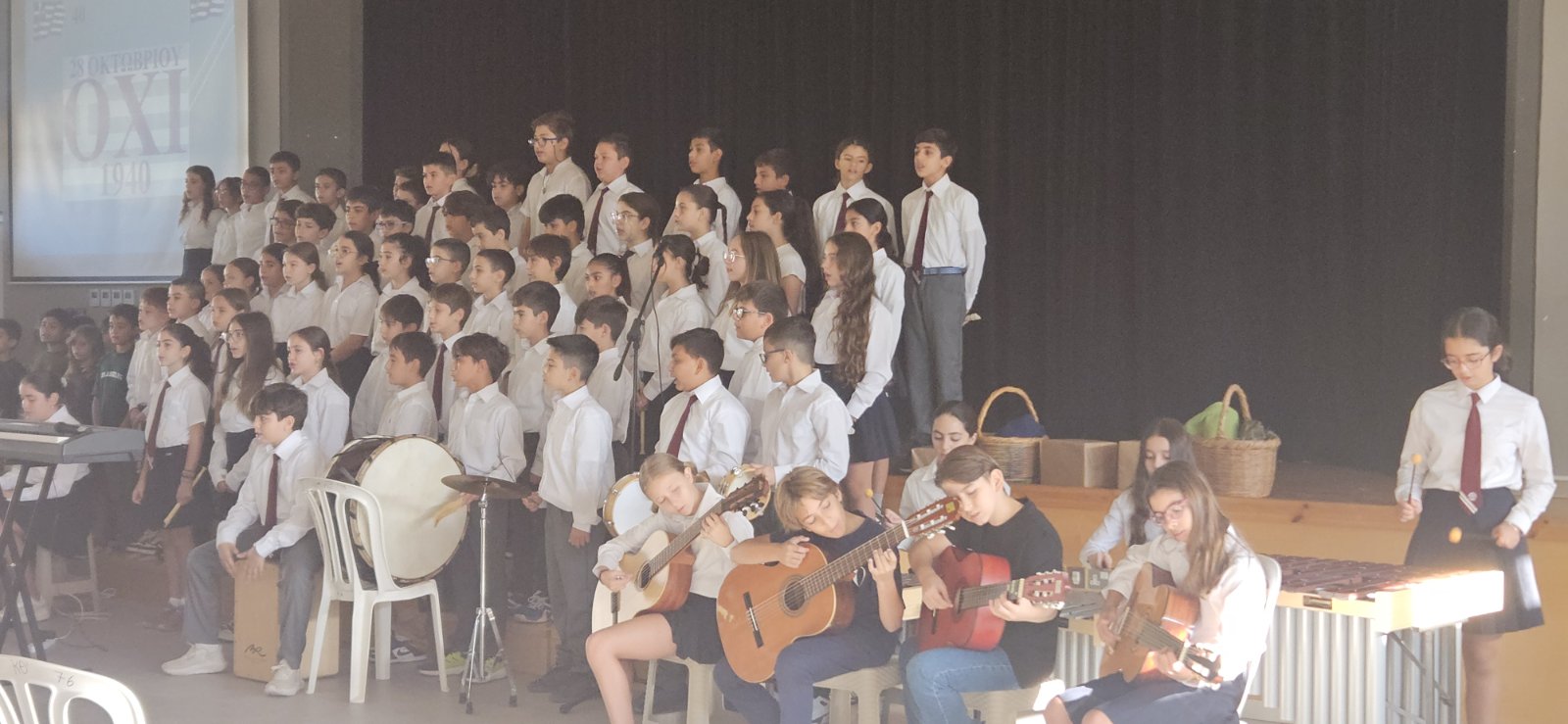 Τα παιδιά της Ε1, Ε3 και Α1 μας μεταφέρουν στο κλίμα της εποχής του Β΄ παγκοσμίου πολέμου, τότε που ο Ιωάννης Μεταξάς είπε το ηρωικό "ΟΧΙ" στους Ιταλούς.