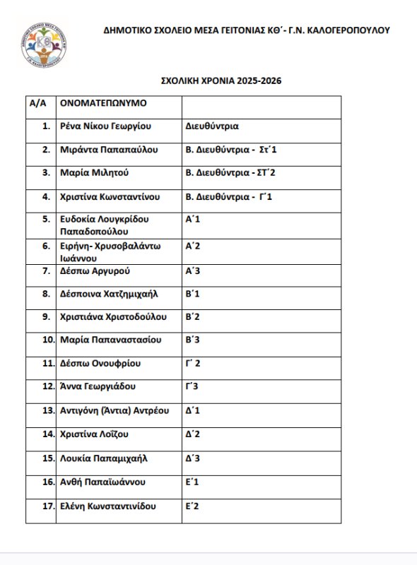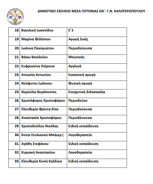 Προσωπικό Δημοτικού Σχολείου Μέσα Γειτονιάς ΚΘ΄ - Γ.Ν. Καλογερόπουλου